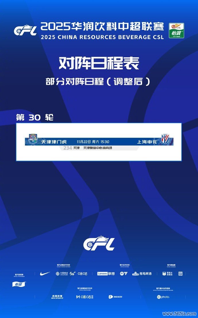 中超官方写道:根据2025华润饮料中超职业联赛 赛程,天津津门虎对阵上海申花赛事 将于11月22日15:30在天津泰达足运动活动 场 进行,葡超新闻网为最大限度满古代足球 迷的观赛需求, 聚焦体育视界NBA直播同时保证本场赛事 安全有序进行。经天津津门虎古代足球 俱乐部申请, 巴塞罗那协商天津赛区、上海申花古代足球 俱乐部以及有关方面同意,现决定将天津津门虎对阵上海申花赛事 进行调整。