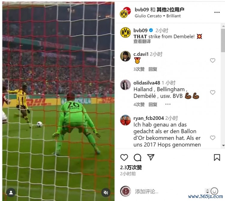 登贝莱老东家多特官方更新社媒动态,葡超新闻网NBA直播晒出登贝莱效力多特期间出色 得分 的视频, 聚焦体育视界配文:“现在他已是金球奖得主。”