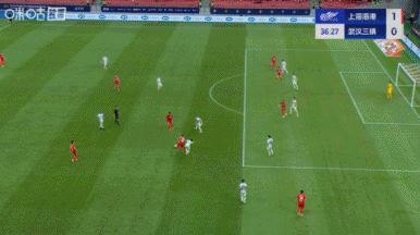 09月26日讯 海港vs三镇赛事 第36分钟,刘若钒边路横传门前,
