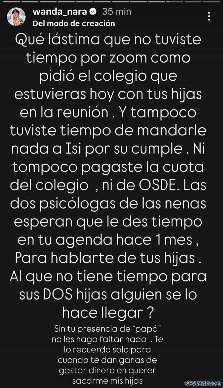 旺达:真可惜,你没能按学校要求参加今天的线上家长会,和女儿们一起通过Zoom(视频会议软件)参会。你也没时间给伊西送任何生日礼物。学校的费用、医疗保险的费用你也都没交。女儿们的两位心理医生一个月前就希望你能在日程中留出时间,和她们聊聊你的女儿们。对自己的两个女儿都没时间的人, 聚焦体育视界需要有人提醒他吗?没有你这个‘爸爸’的存在, 巴塞罗那我也不会让她们缺任何东西。我提醒你,葡超新闻网体育直播这只是为了防止你哪天想花钱把我的女儿们从我身边夺走。