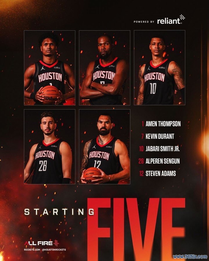 阿门、杜兰特、小史密斯、申京、亚当斯。