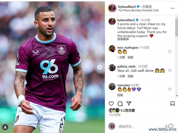 8月24日讯 英超第二轮赛事 ,沃克踢满全场,帮助伯恩利主场作战 2-0击败桑德兰。
