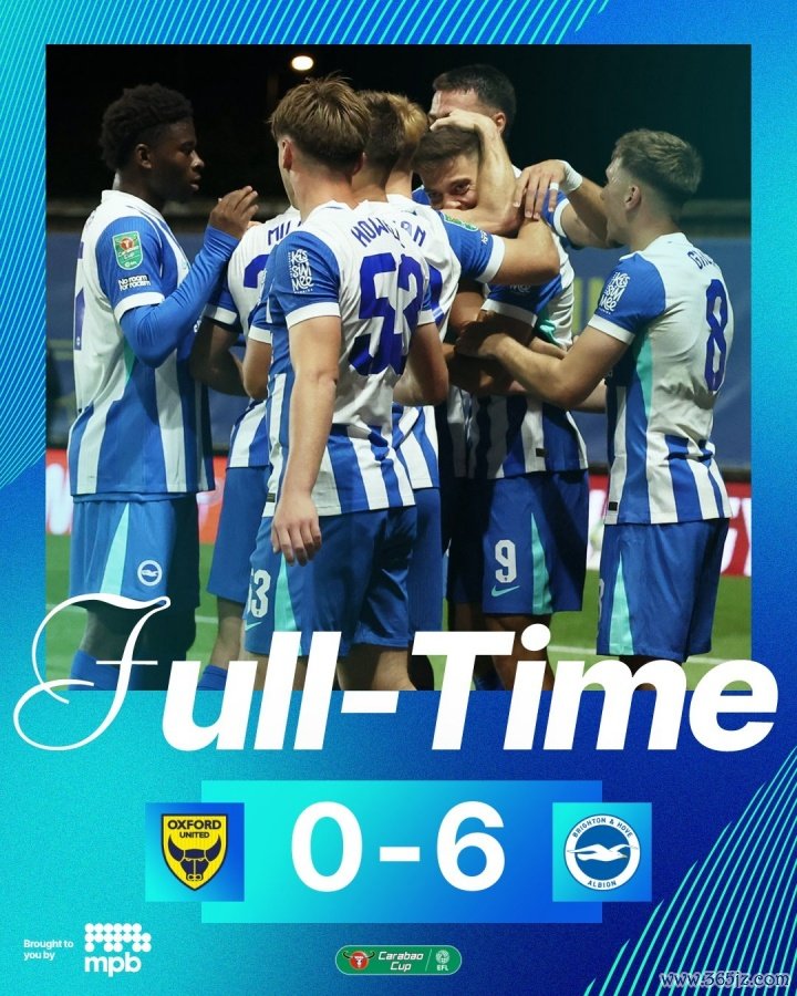 08月28日讯 英联杯第2轮赛事 ,布莱顿6-0大胜牛津联,挺进下一轮。